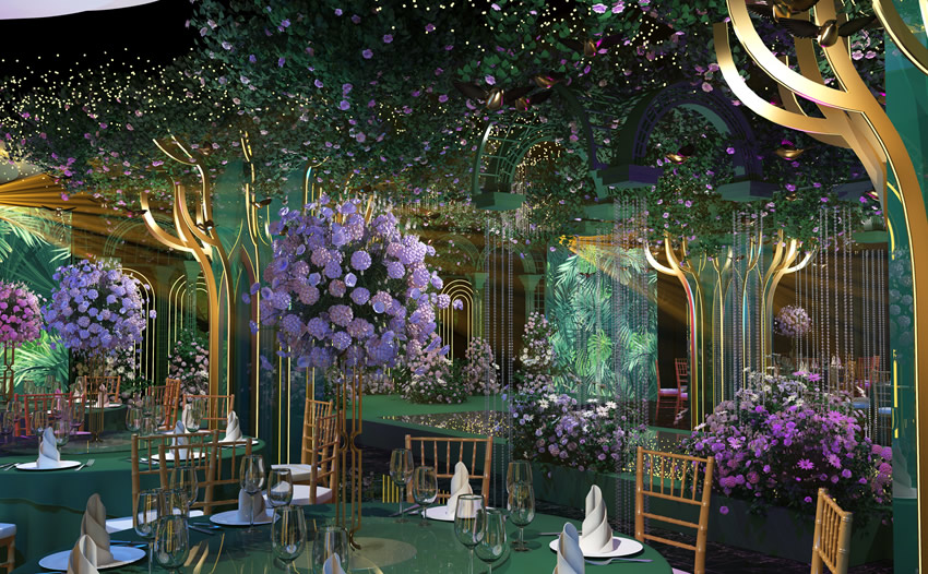 婚礼堂设计是一种专门用于举办婚礼和其他相关活动的室内设计。以下是一些关于婚礼堂设计的建议: